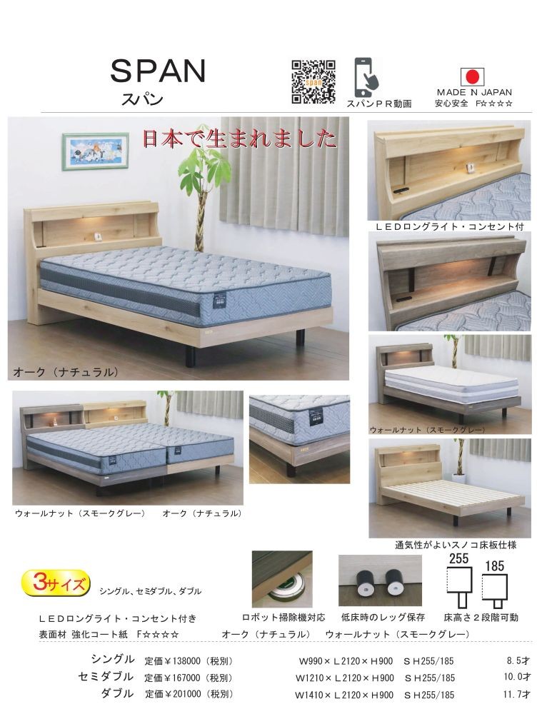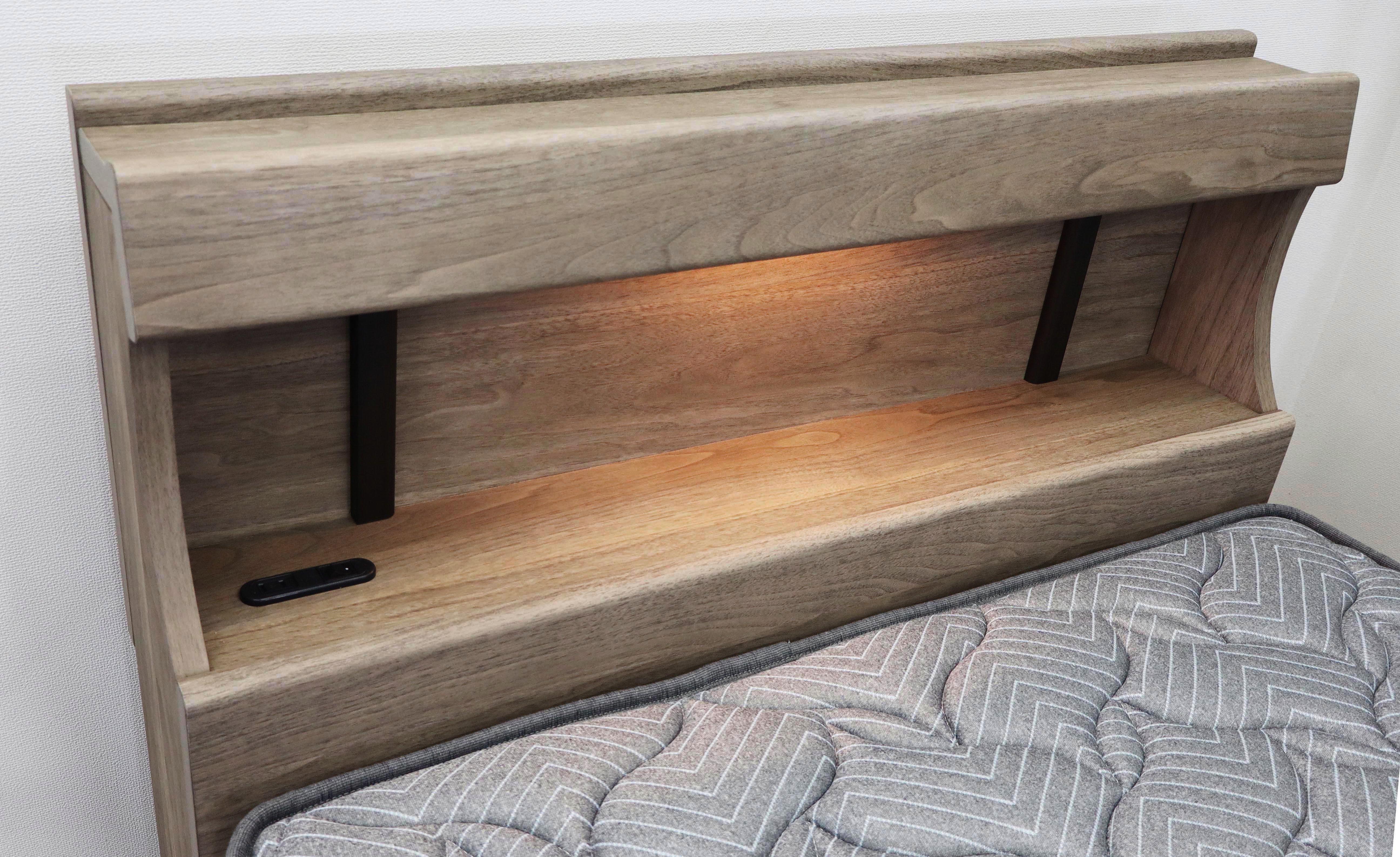 ロングLEDライト付き、コンセント付き 床高さ2段階調節可動、低床時のレッグ保存機能付き、ロボット掃除機対応