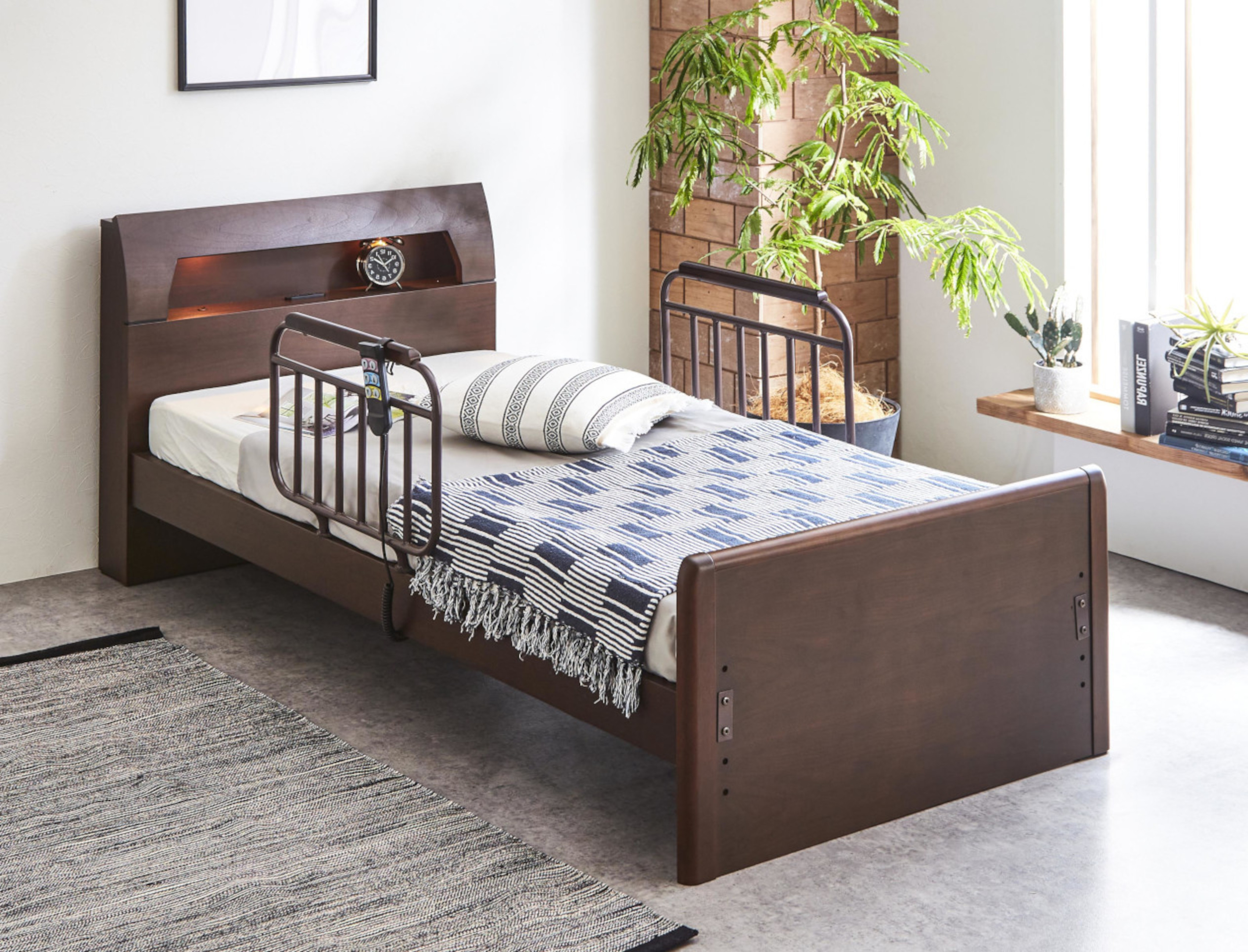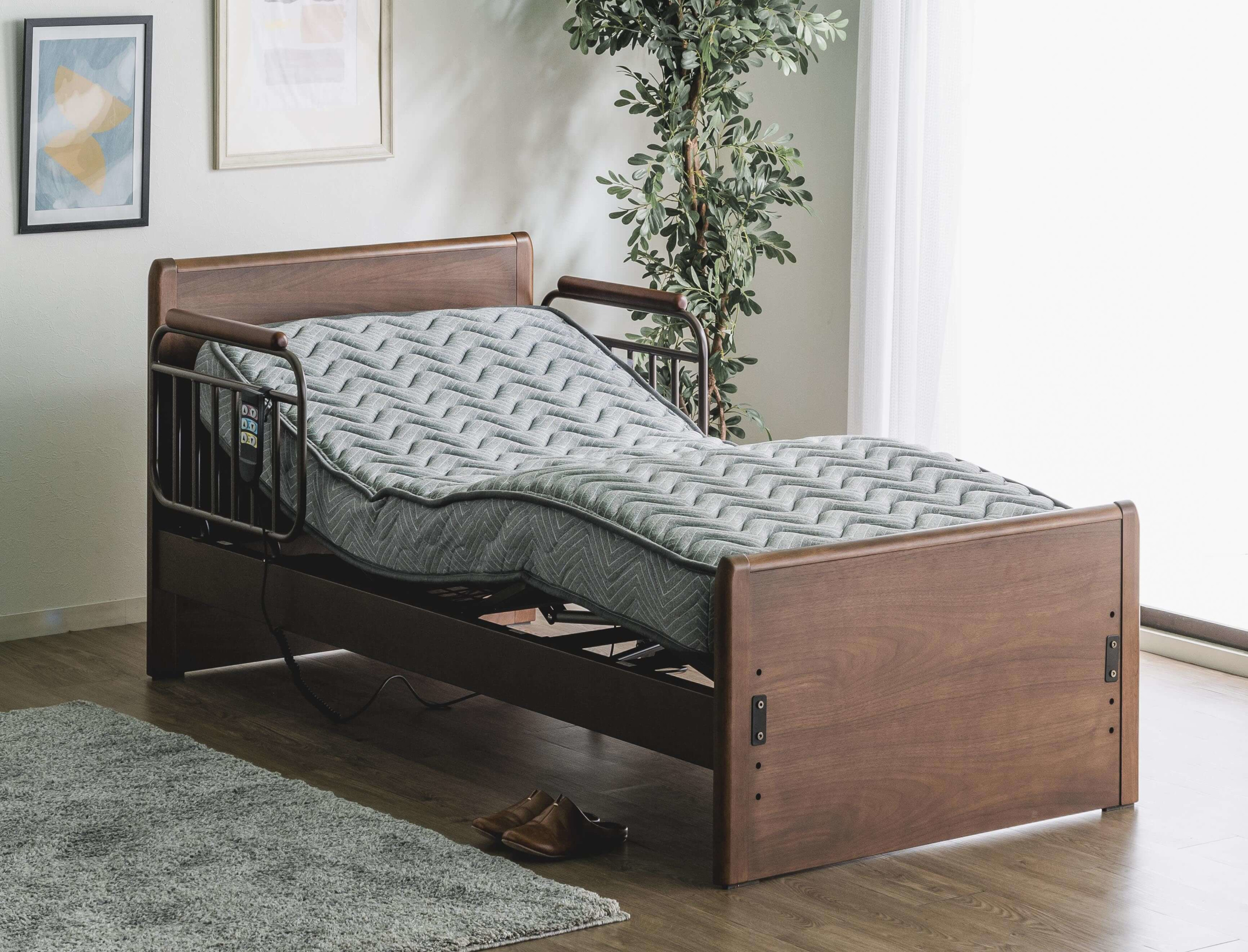 ウォールナット材を使用した自然の美しさと温かみを感じる電動ベッドフレームです。