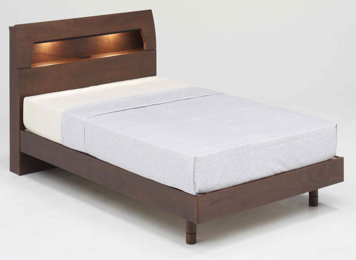 天然木を使用したLED照明と棚付きヘッドボードのベッドフレームです。