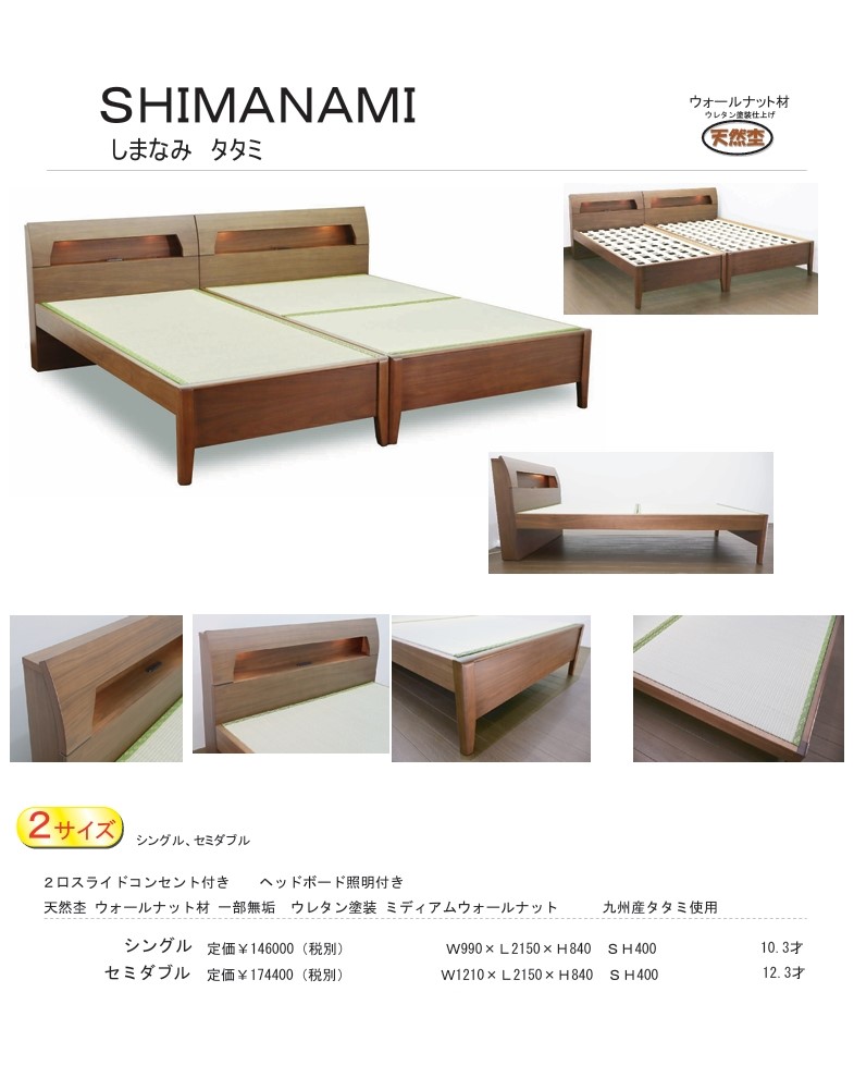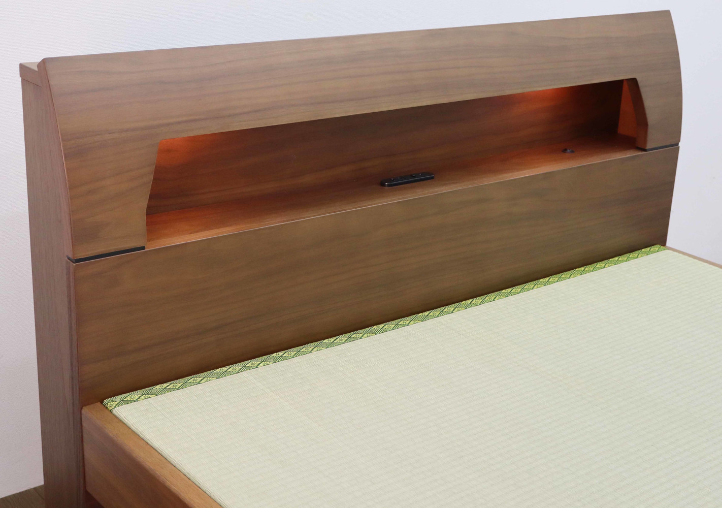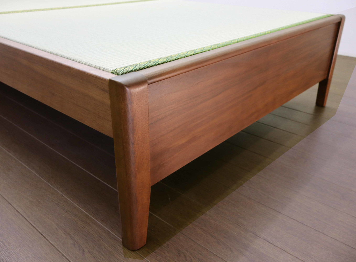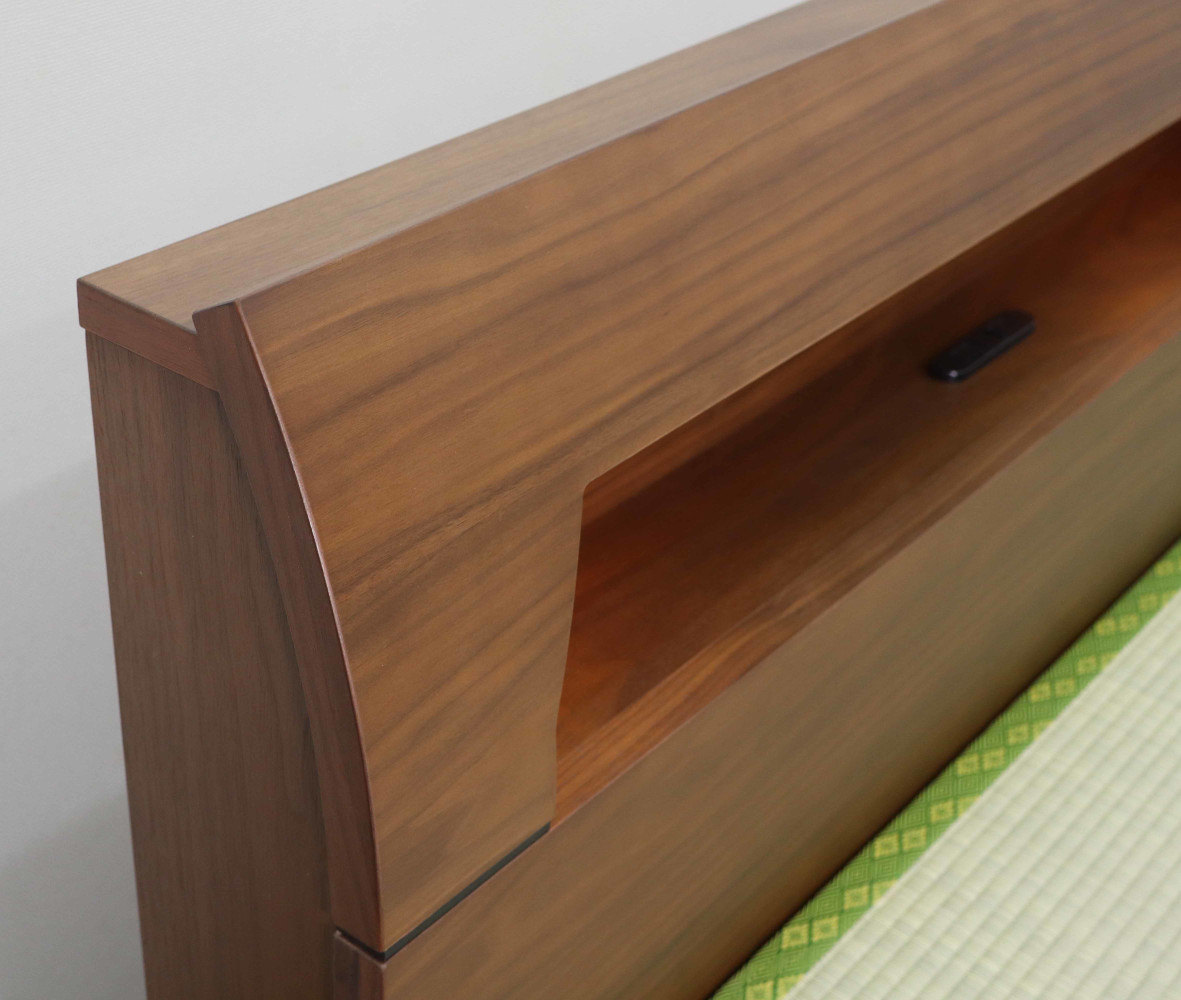 ウォールナット材天然杢の風合いが感じられるタタミベッドフレーム