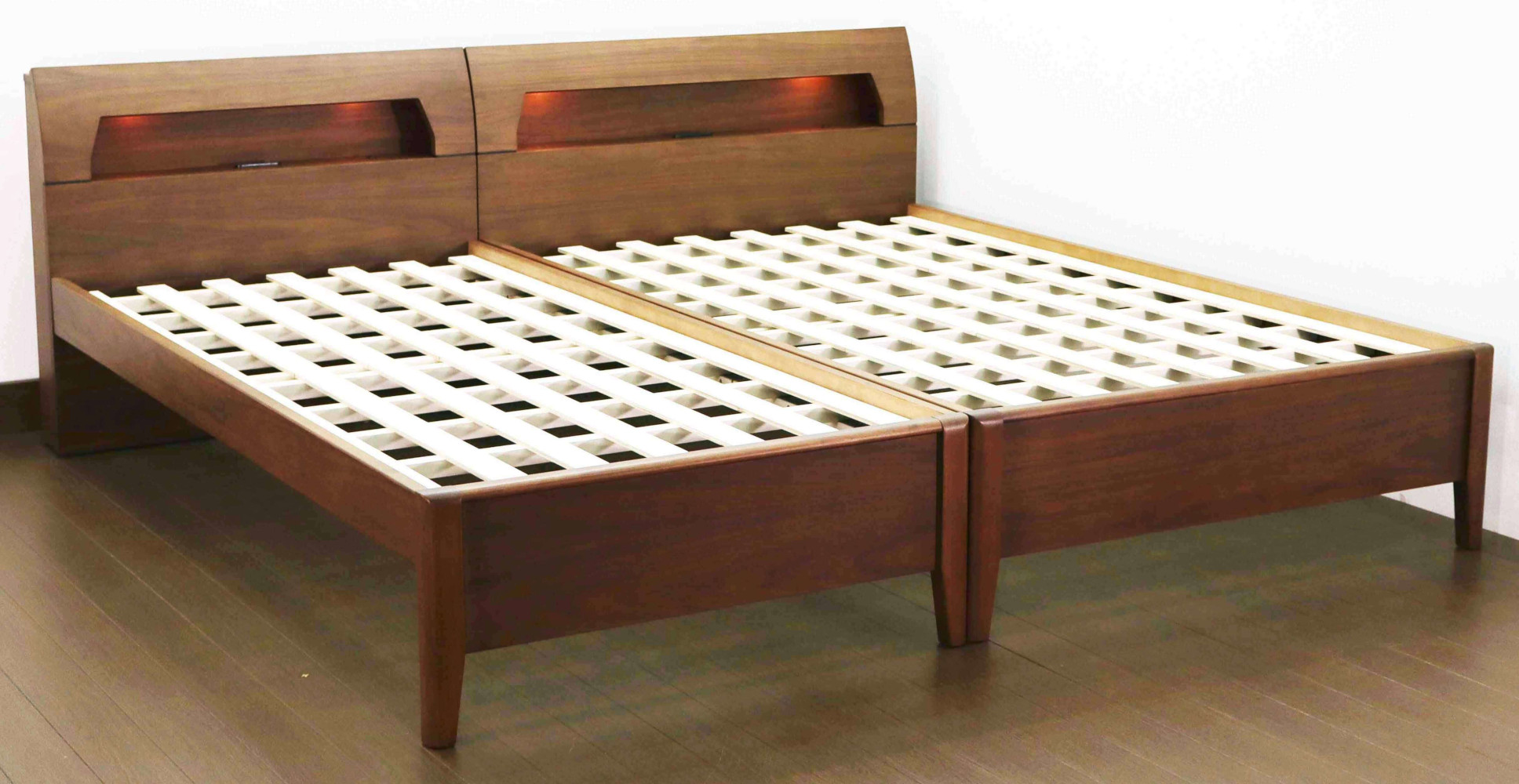 2口スライドコンセント付き、ヘッドボード照明付き