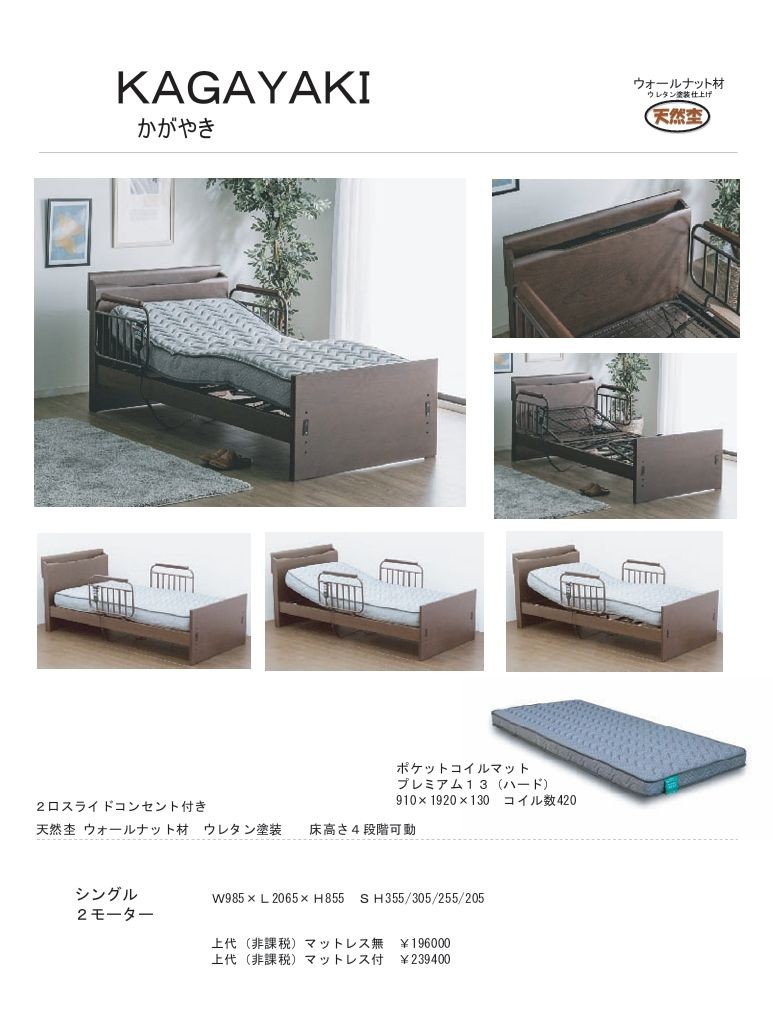 ウォールナット材天然杢の風合いが感じられる電動ベッドフレーム 選べるモーター2機種、選べるマットレス有無
