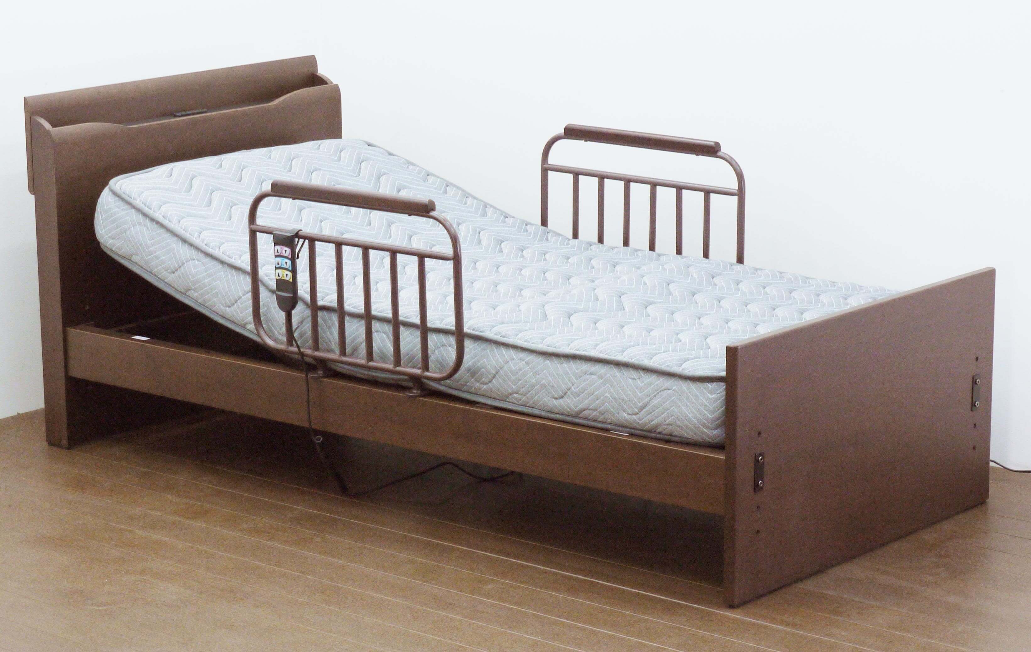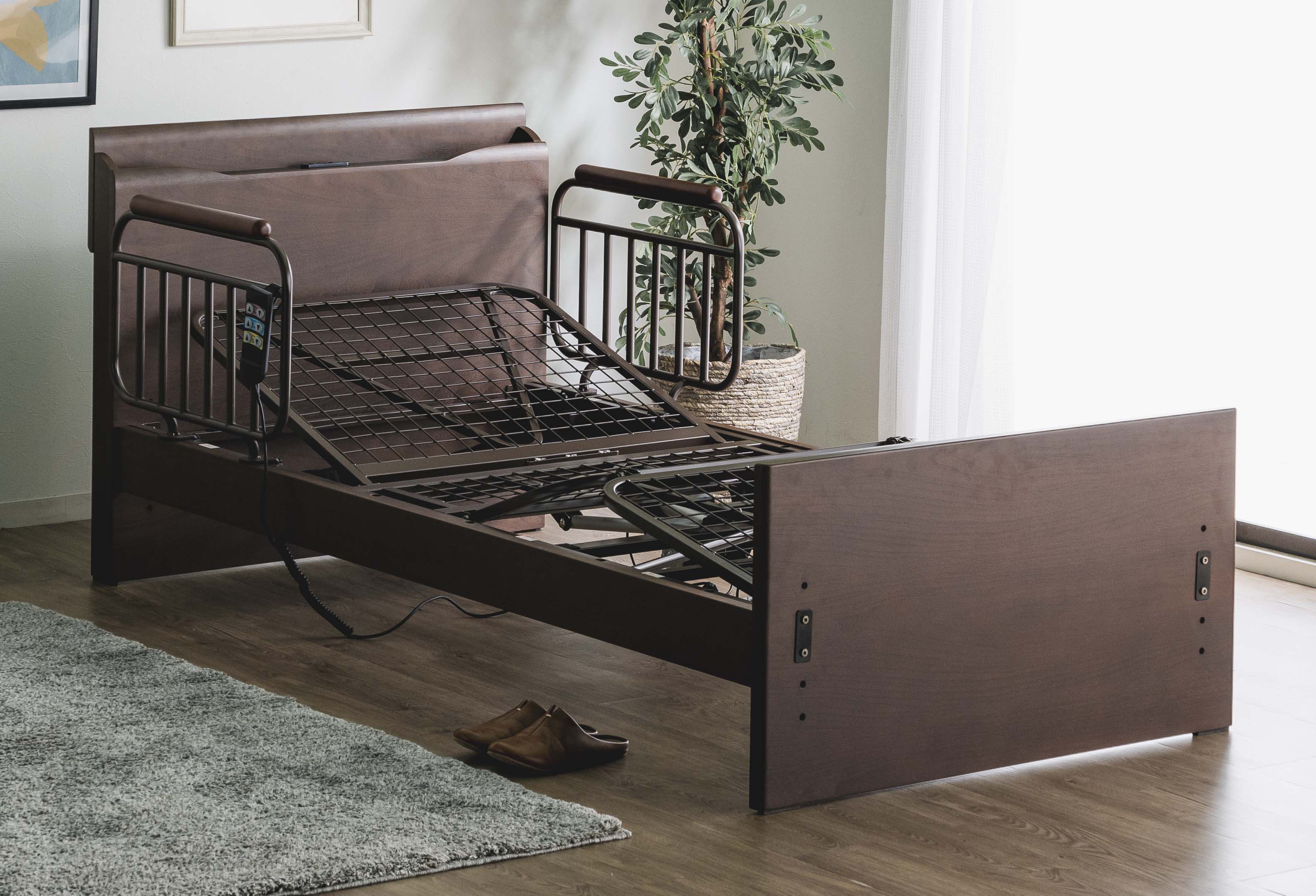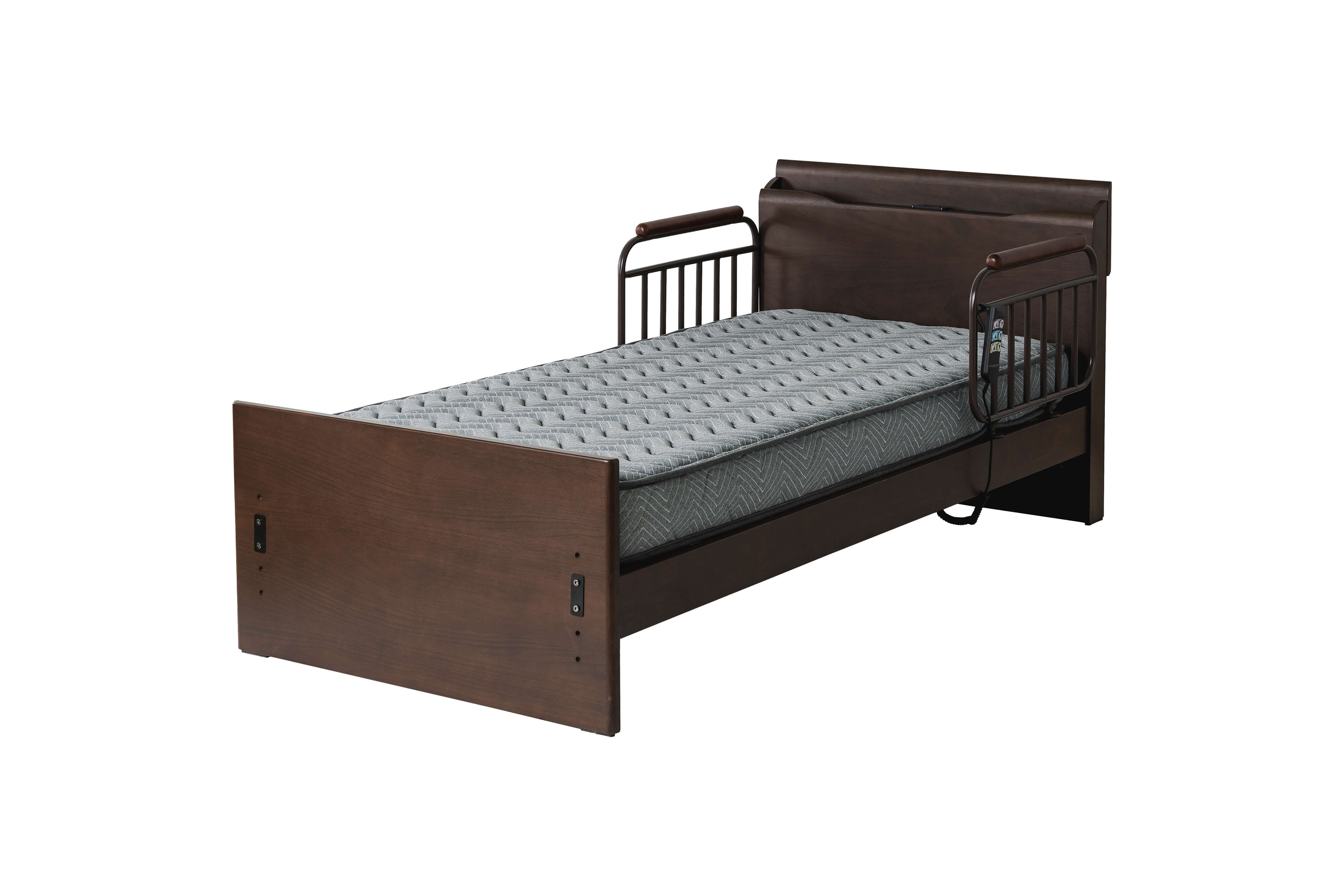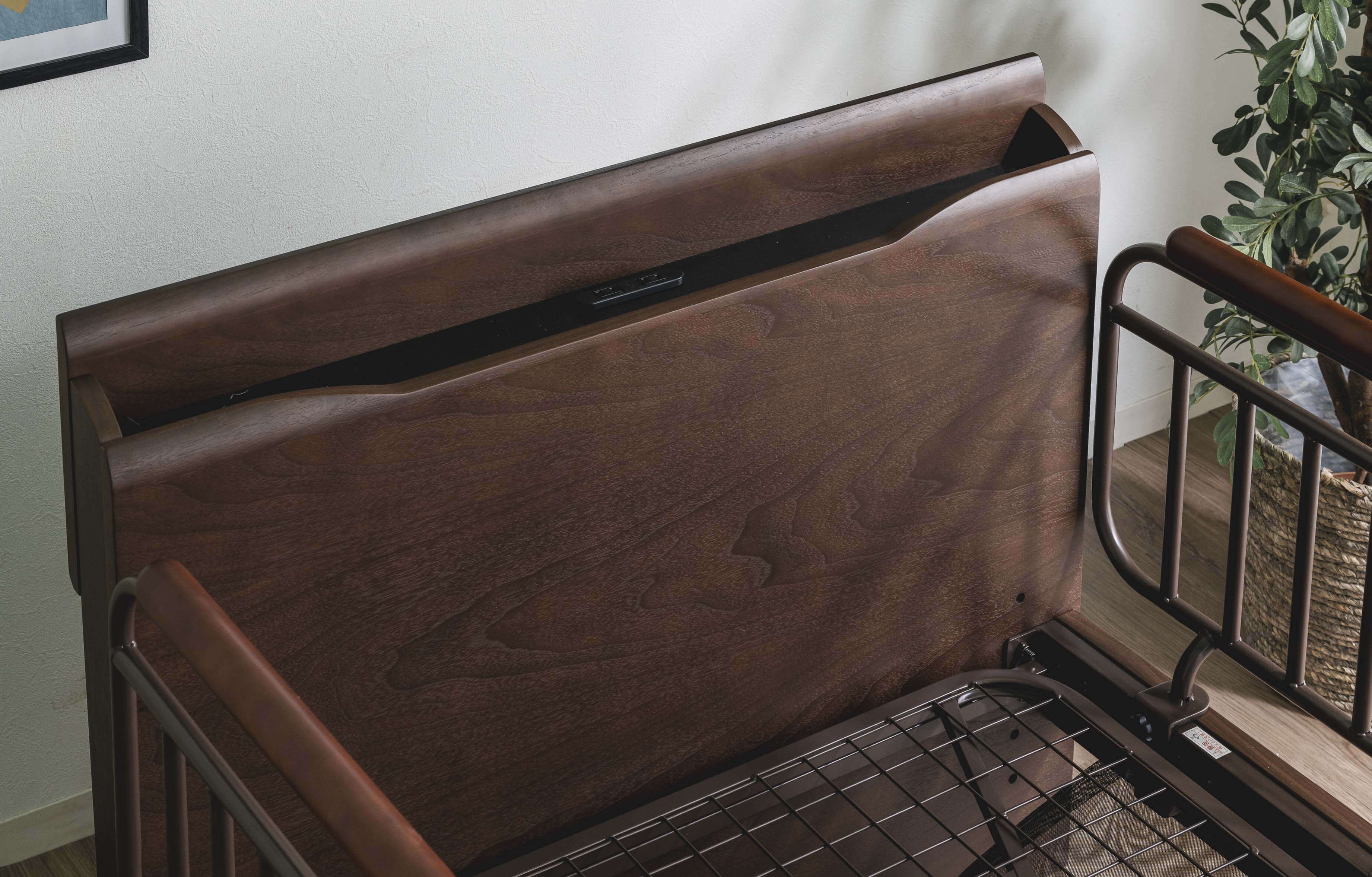 2口スライドコンセント付き、ヘッドボード棚付き 手すり付き、床高さ4段階調節可動、ロボット掃除機対応