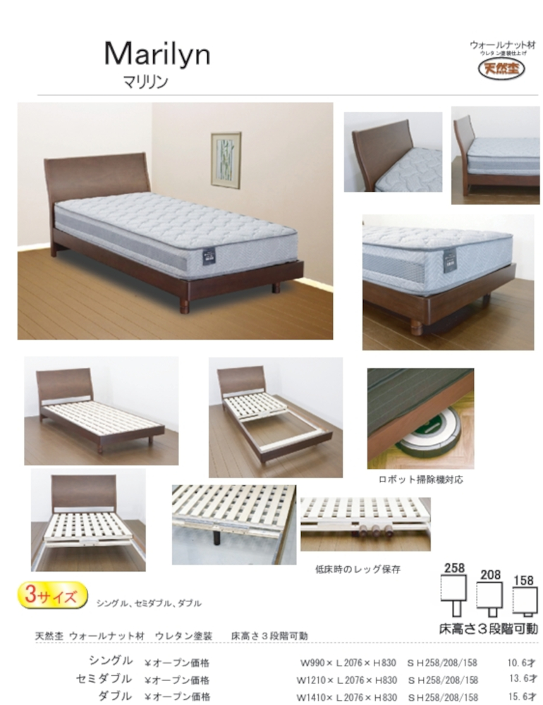 天然木ウォールナット突板/一部無垢 ウォールナット材、成型曲面加工 床高さ3段階調節可動、低床時のレッグ保存機能付き、ロボット掃除機対応