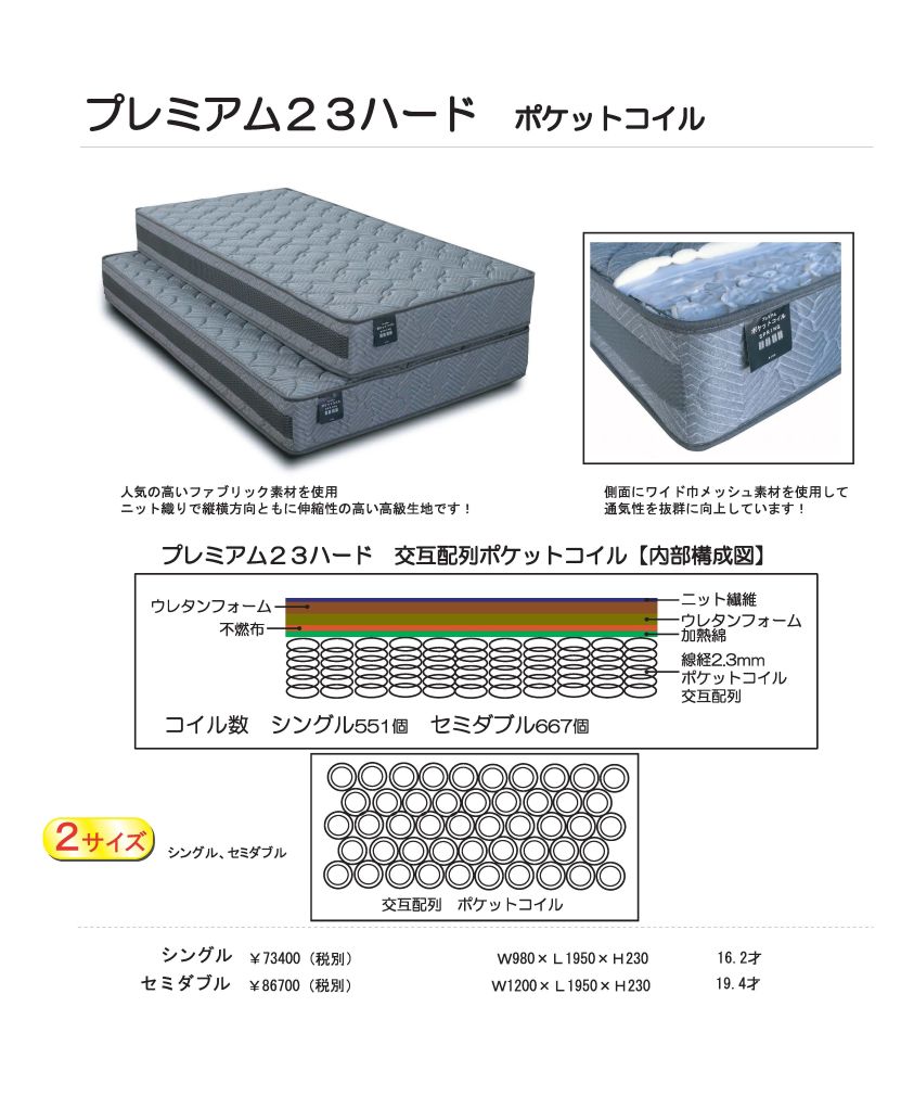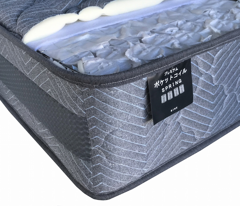 ファブリック素材のニット織り仕様、線形23mm交互配列ポケットコイル仕様