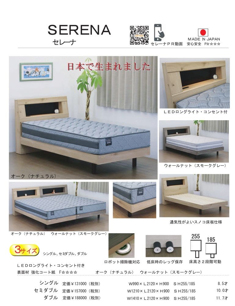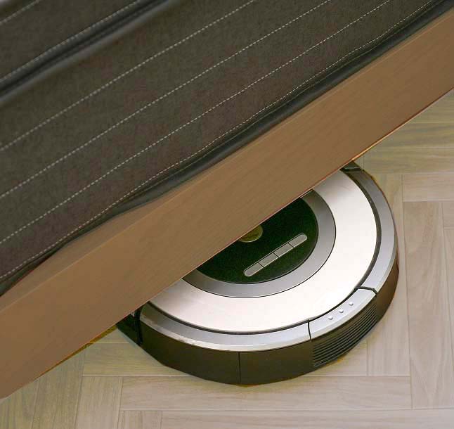 ロングLEDライト付き、コンセント付き 床高さ2段階調節可動、低床時のレッグ保存機能付き、ロボット掃除機対応
